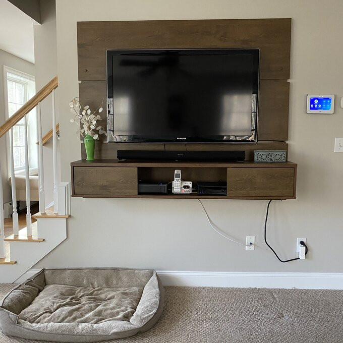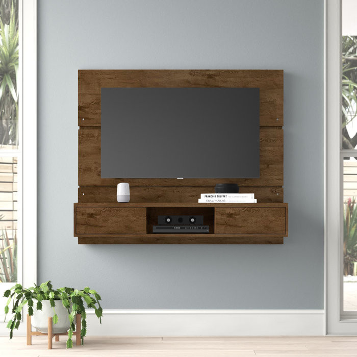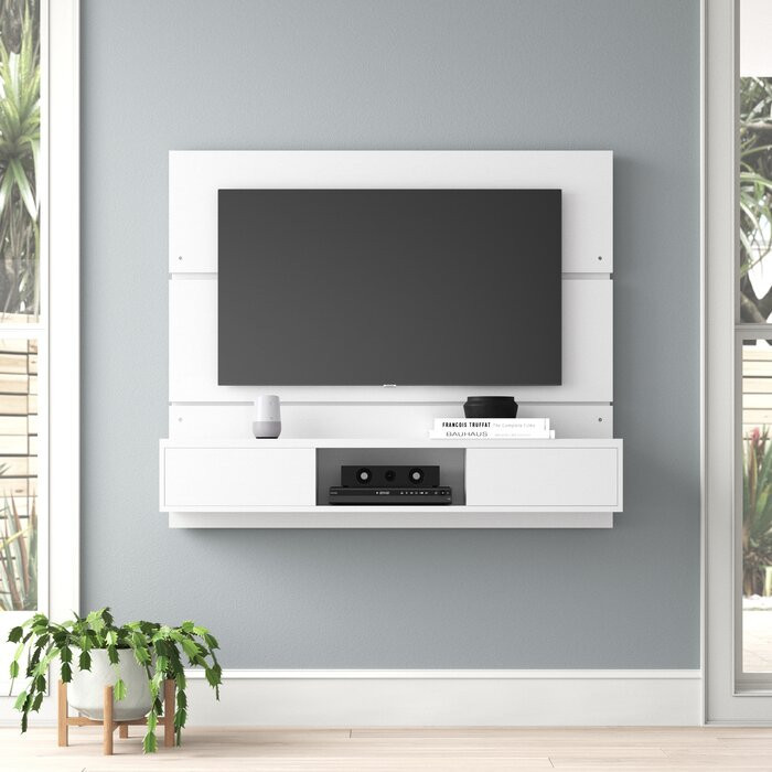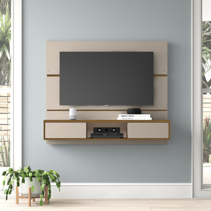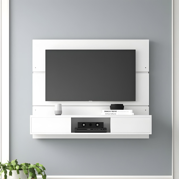این میز تلویزیون دیواری طرحی شناور را به نمایش می گذارد تا فضای کف را آزاد کند و حال و هوای مدرن را به اتاق نشیمن یا اتاق خواب شما بیاورد. دو درب کشویی فضایی را برای دیویدیها و بازیها نشان میدهد، در حالی که یک قفسه وسط محلی برای پخشکننده رسانه شماست. بریدگی های مدیریت کابل متعدد به شما کمک می کند تا سطوح شما را بدون درهم و برهم نگه دارید. عرض این پایه 160 سانتی متر است که تا تلویزیون 70 اینچ را پوشش می دهد ولی برای نمایشگرهای تخت تا 55 اینچ ایده آل است.